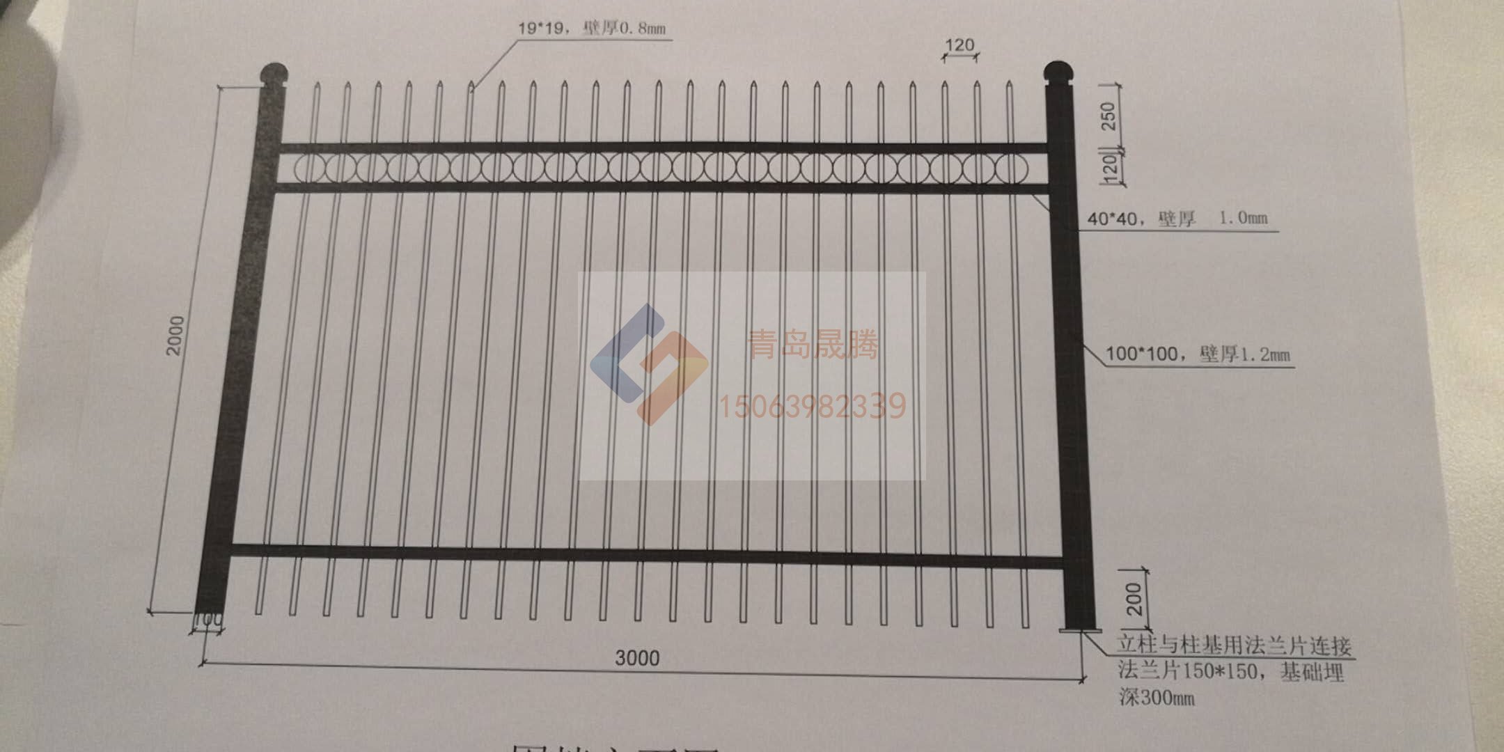 鋅鋼護(hù)欄整體高度2米,立柱中心距為3米,采用100mm*100mm方形鍍鋅鋼管作為立柱,40*40mm方形鍍鋅鋼管作為衡量,20mm*20mm方形鍍鋅管作為豎向連接桿,橫梁、立柱、豎向連接桿以沖孔穿接的方式連接,顏色搭配為綠白搭配給人以新鮮感。